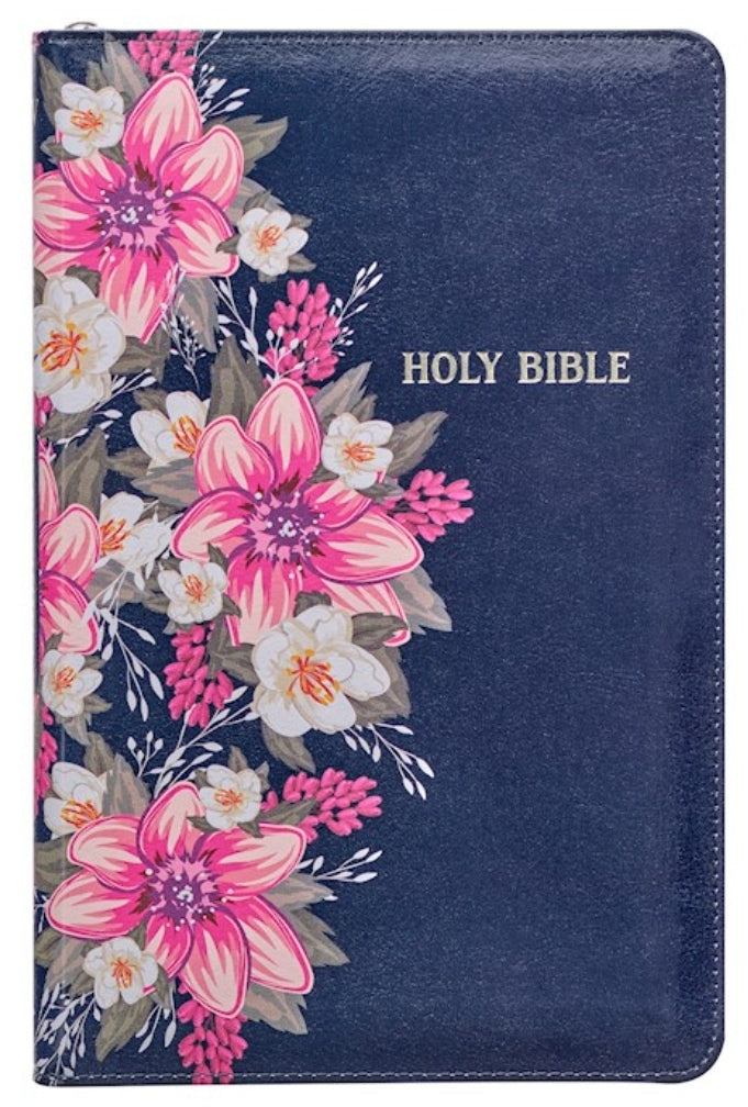 KJV Deluxe Gift Bible-Printed Floral Blue LuxLeather with Zipper