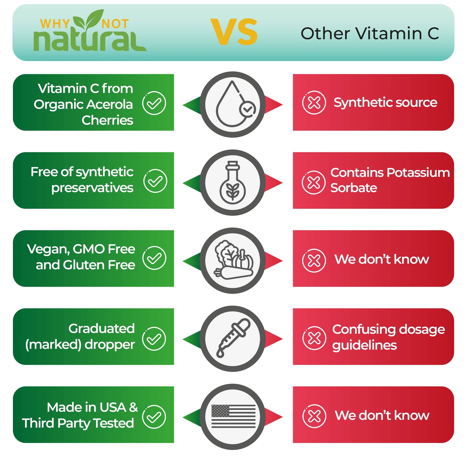 Organic and Clean Formula: no sugars, sucralose or other synthetic sweeteners, or preservatives! Our vitamin C comes from Acerola cherries and has a delicious tart cherry taste.
