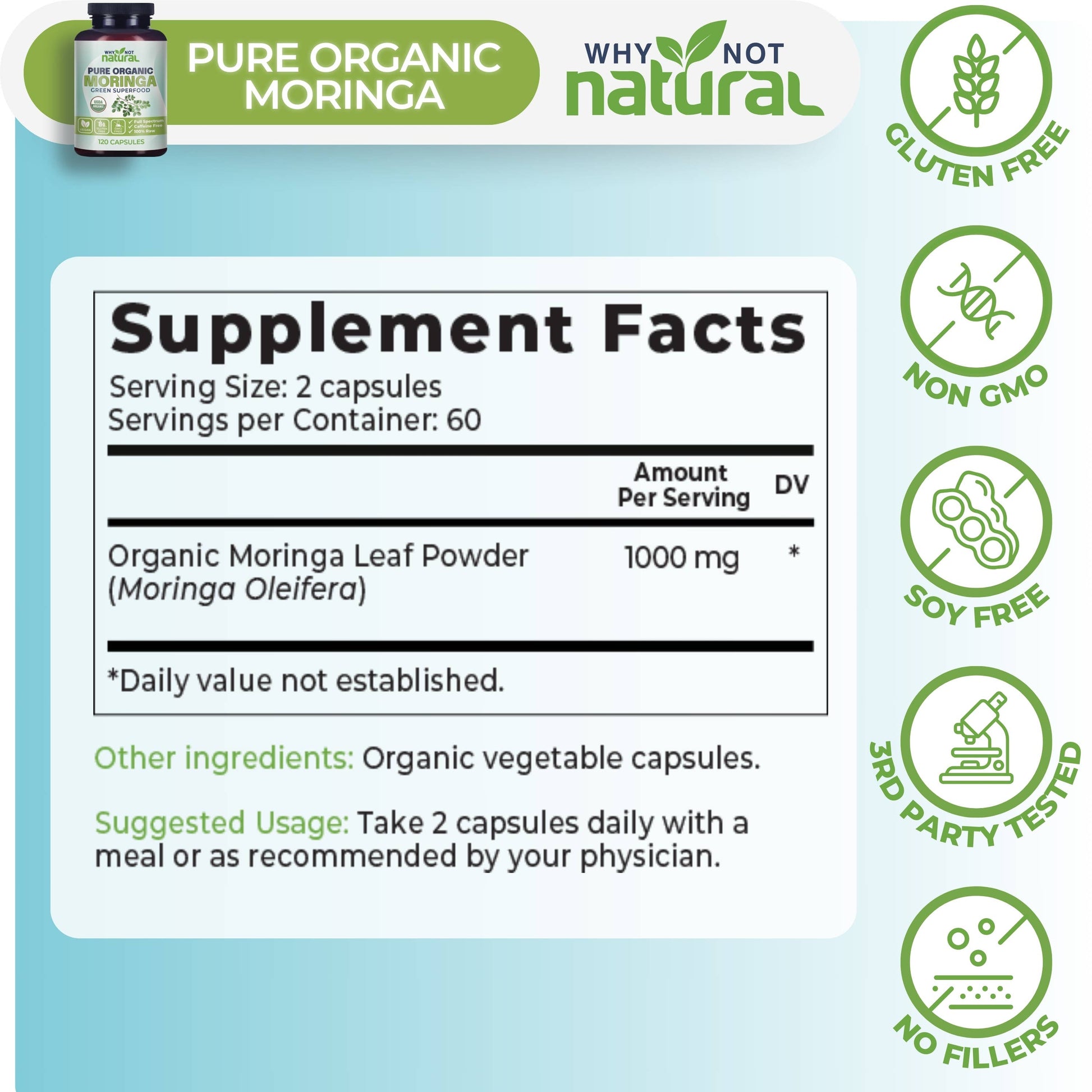 Say no to dull green Moringa: Compare the vibrant green color of our moringa to others on the market - we searched tirelessly for the greenest moringa leaves available. Dull green indicates less freshness, damaged leaves, overdrying and overheating during drying, and fewer nutrients.